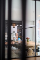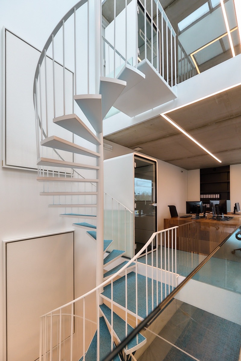- Licht en ruimtelijk: De vele glaspartijen zorgen voor een overvloed aan natuurlijk licht, wat de werkomgeving zowel aangenaam als productief maakt.
